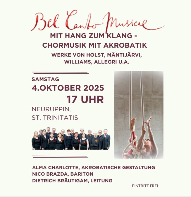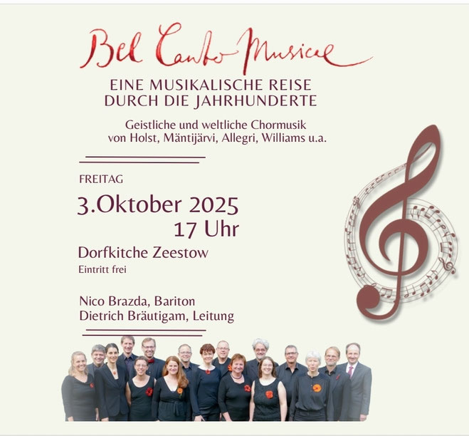 Der Kammerchor BelCantoMusicae e.V. wurde im Jahre 1989 in Potsdam gegründet. Inzwischen singen im Chor fünfzehn SängerInnen unter der Leitung von Dietrich Bräutigam